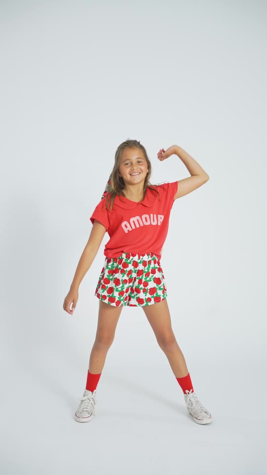 Couleur: Écru à Imprimé Roses Rouges